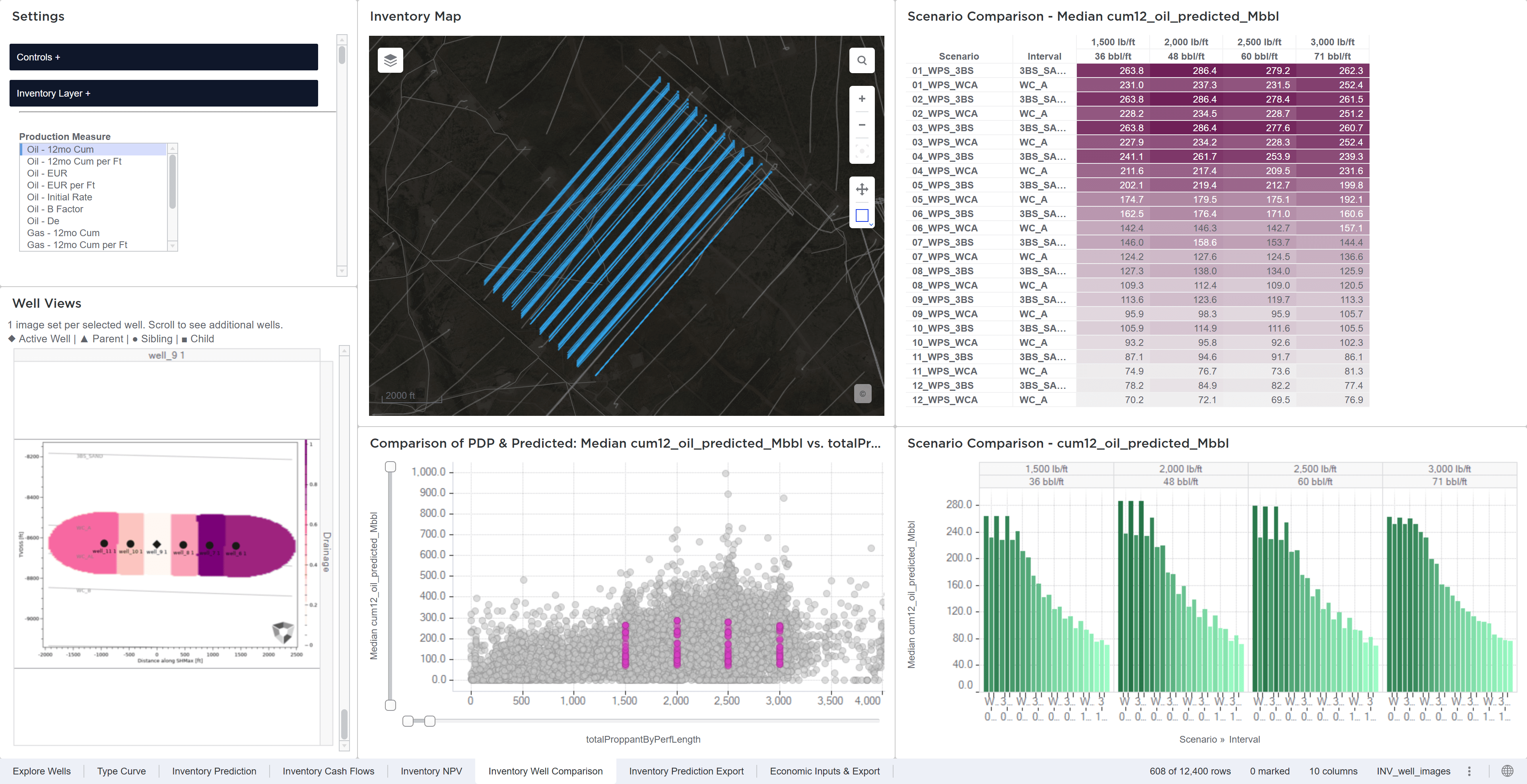 Modify spacing, timing, landing zone, or completions design and see the impact on forecast and financial performance. Export results, compare against benchmarks, or run what-if scenarios across multiple DSUs.